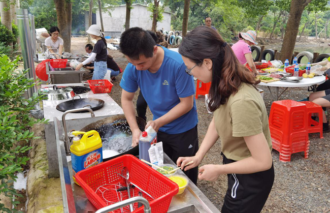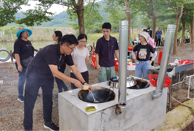 活動(dòng)結(jié)束后,大家來(lái)到燒烤、野餐場(chǎng)地,有的生火、有的配調(diào)料,洗菜、炒菜、燒烤,忙得不亦樂(lè)乎。沒(méi)過(guò)多久,一道道香噴噴的美食就擺在了眾人面前,整個(gè)野炊燒烤現(xiàn)場(chǎng)洋溢著歡聲笑語(yǔ),其樂(lè)融融,大家庭的氛圍濃重、愜意。