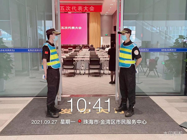 二是強化疫情防控。我司嚴(yán)格按照《金灣區(qū)第五次黨代會疫情防控工作方案》相關(guān)要求做好防疫物資儲備、隔離場所設(shè)置、現(xiàn)場預(yù)防性消毒以及防疫宣傳培訓(xùn)等防控措施;加強會議前后人員、車輛出入管理,嚴(yán)格落實體溫檢測、正確佩戴口罩、保持一米線安全距離等措施,守住疫情防控“頭道關(guān)口”。加大安保人員巡查頻次,合理引導(dǎo)車輛通行及停放,確保運行順暢、井然有序。