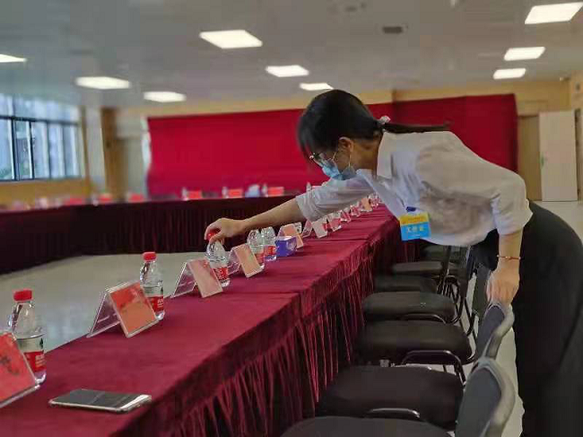 據(jù)統(tǒng)計,本次黨代會我司共派出83名工作人員參與會務(wù)保障工作,承接大小會議10場次,接待會務(wù)人員1350多人次,達歷史之最;會前配合區(qū)職能部門完成參會人員緊急核酸采樣工作,開展應(yīng)急演練2次;會議期間更換幕簾調(diào)整擺臺10余次,有力保障會議順利召開。